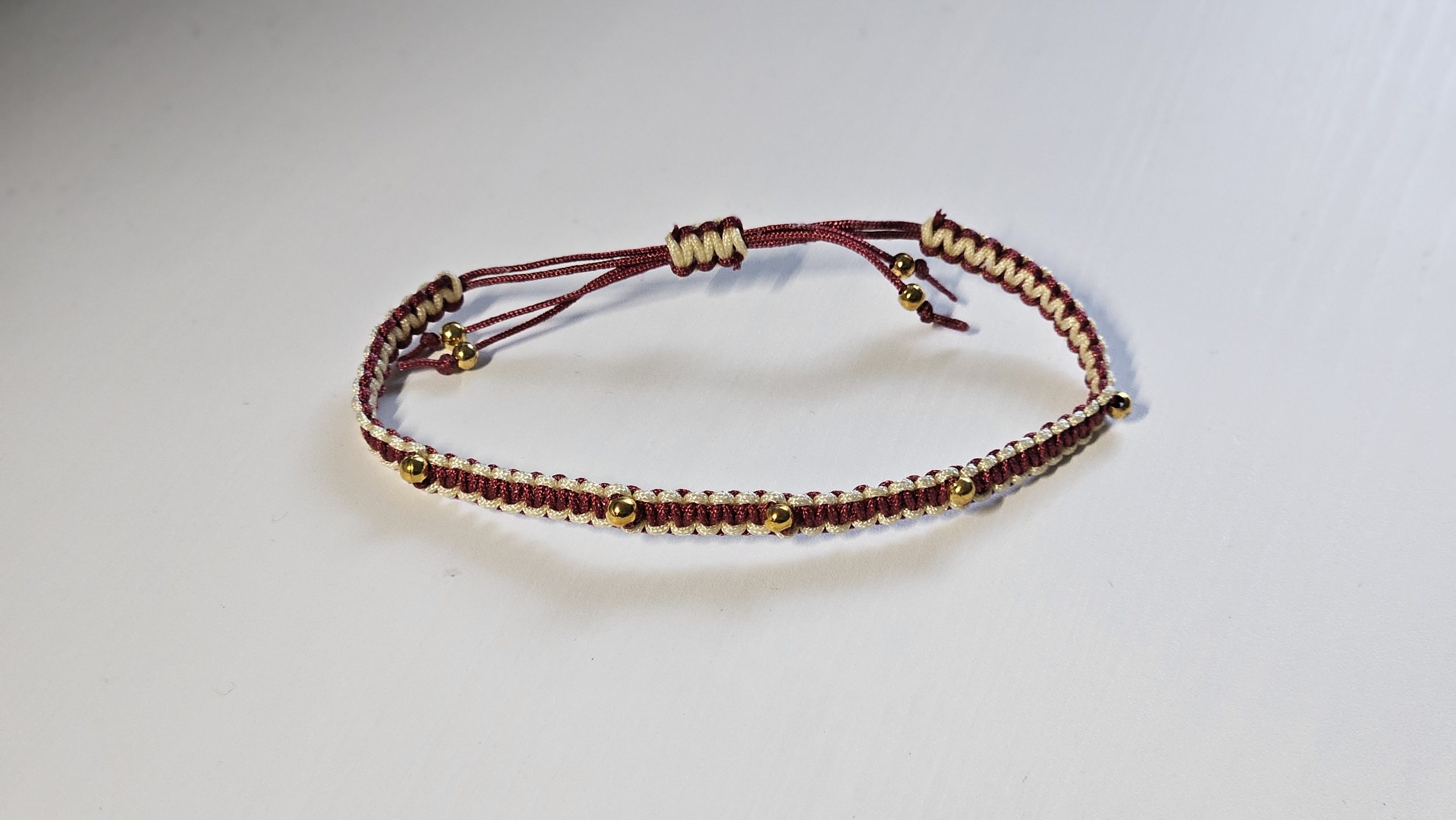 Armband Dunkelrot-Elfenbein mit Perlen – schmal